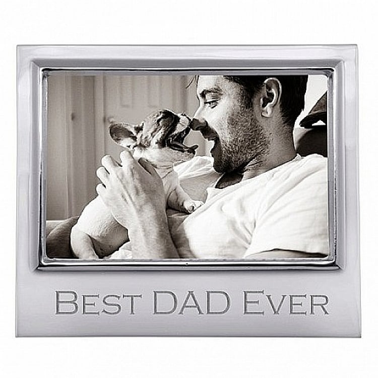 Main view Product Details Mariposa® BEST DAD EVER 7x5 Signature frame by Mariposa® — The SIGNATURE frame for 7"x5" photos engraved with the sentiment BEST DAD EVER Mariposa fine metallic decor is handcrafted from 100% recycled sandcast aluminum. Frame will not tarnish If needed, handwash in warm water with mild soap and towel dry immediately Occasional use of non-abrasive metal polish will revive luster Important Note: Mariposa items are hand engraved. Your piece may differ slightly from the photo. BEST DAD EVER 7x5 Signature frame by Mariposa® Mariposa® WINTER CELEBRATION Savings - Buy More / Save More * Add this item to your cart for the full details of this promotion. Conditions may apply. Model #808813197906 $75.00 only 3 left, order soon. In stock Can be shipped today [?] Your Price Match is Active Your request for a price of $0.00 for a minimum quantity of has been accepted. You have [time] left to purchase this item for $0.00 instead of $75.00 each. Find a Lower Price? We BEAT All Authorized Retailers [?] FEATURESDisplays:5"x7"Material:AluminumFinish:SilverOccasion:Christmas, Father`s Day, Valentine`s DayStyle:Contemporary, Eco-Friendly-Recycled, Sentiments | ready made, Modern, Santa Fe, Shabby Chic, Sophisticated, Words & whimsyOrientation:Horizontal OnlyBrand:Mariposa®Display Type:Desktop Only Approx. Overall Dimensions:7 3/4"x9 3/4"x1" This item ships in its own box SHARE THIS ITEM Share on Facebook