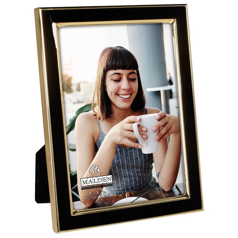 Main view Product Details Malden Designs® Bennett Gold w/BLACK Epoxy 5x7 frame — New, contemporary styling. Gold against your print with attractive black inlay profile. Very pretty hardboard channel insert backing. Glare resistant glass lens. Produced by Malden®. Bennett Gold w/BLACK Epoxy 5x7 frame Model #096287178891 List $19.50 You pay $14.95 This item is currently out of stock and we do not have an expected date at the present time. click here to be automatically notified when it comes back in stock or email merchandising@sendaframe.com for availability information. You can place this item in your shopping cart. It will be added to the 'saved for later' section. Your Price Match is Active Your request for a price of $0.00 for a minimum quantity of has been accepted. You have [time] left to purchase this item for $0.00 instead of $14.95 each. Find a Lower Price? We BEAT All Authorized Retailers [?] FEATURESDisplays:5"x7"Material:Metallic (all)Finish:Black, GoldOccasion:Friendship, Home decorating, HousewarmingStyle:ContemporaryOrientation:BothBrand:Malden Designs®Display Type:Desktop or Wall Approx. Overall Dimensions:6"x8"x1/2" This item ships in its own box SHARE THIS ITEM Share on Facebook