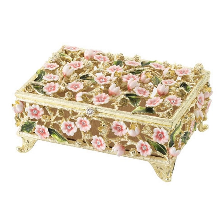 Main view Product Details Olivia Riegel BELLA GOLD VERMEIL FLORAL BOX by Olivia Riegel® — Delightful floral pattern in gold finished pewter, with pink and green hued hand-enameling and hand-set European crystals. Elegant champagne hued moire silk interior lining. Hinged lid. Tarnish resistant. Signature luxury gift box included. An original design from the Olivia Riegel® collection. BELLA GOLD VERMEIL FLORAL BOX by Olivia Riegel® OLIVIA RIEGEL® HOLIDAY CELEBRATION SAVINGS - Buy More / Save More * Add this item to your cart for the full details of this promotion. Conditions may apply. Model #850006219681 $250.00 This item IS in stock and can be expected to ship 12/24/2025 Your Price Match is Active Your request for a price of $0.00 for a minimum quantity of has been accepted. You have [time] left to purchase this item for $0.00 instead of $250.00 each. Find a Lower Price? We BEAT All Authorized Retailers [?] FEATURESMaterial:Gold vermeil (fine)Finish:Gold, Green, Pink, WhiteOccasion:Anniversary, Birthday, Hanukkah, Christmas, Engagement, Friendship, Housewarming, Romantic, Valentine`s Day, WeddingStyle:Art Nouveau, Ornate, TraditionalBrand:Olivia RiegelDisplay Type:not applicable n/a Approx. Overall Dimensions:6 1/4"x3"x4 1/2" This item ships in its own box SHARE THIS ITEM Share on Facebook