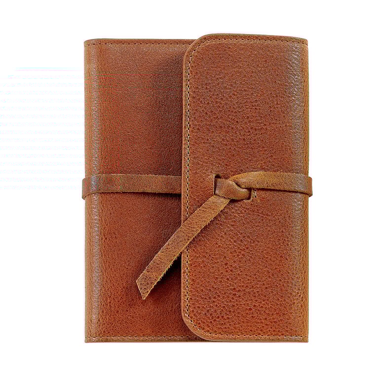 Main view Storage Gift Box Product Details Graphic Image® 7in WRAP COGNAC Fine Leather REFILLABLE JOURNAL by Graphic Image™ — The leather notebook that quickly becomes a writer's constant companion. This refillable wrap-style leather journal features a supple full-grain leather cover and a distinctive wrap-around leather tie closure that keeps your notes secure while adding timeless elegance. Inside is a spiral-bound insert with 176 lined, perforated pages on premium gold-gilded paper—perfect for everyday note taking, business, or personal journaling. Size: 5-3/8" x 7-3/8" Crafted in smooth full-grain leather Wrap-around leather tie for style and protection Paper has luxe gold gilt edges Available in other leathers and colors (see RELATED STYLES links below) Personalization is available for up to 3 initials only REFILLABLE - For additional refills, please see ACCESSORIES below Individually bench-crafted in the USA Individually bench crafted in the USA by Graphic Image®. 7in WRAP COGNAC Fine Leather REFILLABLE JOURNAL by Graphic Image™ Model #611959774760 $90.00 1 available to ship, more on the way. In stock Ships next business day [?] Your Price Match is Active Your request for a price of $0.00 for a minimum quantity of has been accepted. You have [time] left to purchase this item for $0.00 instead of $90.00 each. Find a Lower Price? We BEAT All Authorized Retailers [?] FEATURESDisplays:5"x7"Material:Leather (fine)Finish:BrownOccasion:Back to School, Birthday, Bon voyage, Business & office, Corporate gifts, Employee honors, Father`s Day, Good luck, Graduation, Inspirational, Retirement, Team & coach gifts, Thank-Motivate-RewardStyle:Classic, Preppy, Traditional, Travel Ready, ContemporaryBrand:Graphic Image®Display Type:not applicable n/a Approx. Overall Dimensions:5 3/8"x7 3/8" This item ships in its own box SHARE THIS ITEM Share on Facebook