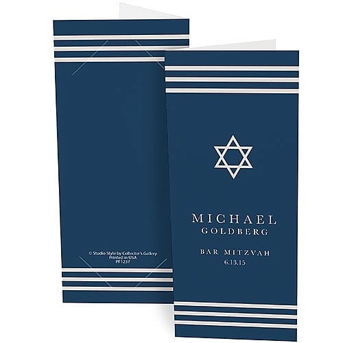 Main view Back / Front Product Details Collectors Gallery STAR OF DAVID Personalized Photo Strip holders for 2x6 Photobooth Prints — Photo booths are popular at weddings, sweet 16 parties, quinceaneras, bar/bat mitzvahs, graduations, anniversaries, family reunions, holiday parties, festivals, and corporate events. Give guests something to take their photo strips home in with a personalized folder. Choose from any of our customizable designs, or create a folder unique for your event. All designs are printed on smooth, lightweight 12 pt. paper stock and hold a classic 2" x 6" picture strip. Whether it's a party favor or a marketing piece for your company, photo booth folders make great event souvenirs. An inexpensive bar/bat mitzvah favor Overall size measures 3" x 7" (when closed) Holds a 2" x 6" photo (for photobooth strips) Lightweight smooth finish paper Inside corner die-cuts hold picture in place Shipped flat, not folded FREE personalization included in the price Envelopes are not available Sold in increments of 10; minimum 100 folders. STAR OF DAVID Personalized Photo Strip holders for 2x6 Photobooth Prints Model #021352021376 $9.90 ( set of 10 / $0.99 ea ) This item can be expected to ship by 02/24/2026. Order now by clicking ADD TO CART (below); you are only charged when we actually ship. Or, Click here to be automatically notified when it comes back in stock. Your Price Match is Active Your request for a price of $0.00 for a minimum quantity of has been accepted. You have [time] left to purchase this item for $0.00 instead of $0.99 each. Find a Lower Price? We BEAT All Authorized Retailers [?] FEATURESDisplays:2"x6"Material:Card-stockFinish:Blue, Multi-Color, WhiteOccasion:Bar & Bat Mitzvah, Group Events + PartiesStyle:Contemporary, Pop Culture, Words & whimsy, JudaicaDisplay Type:not applicable n/a Approx. Overall Dimensions:3"x7" SHARE THIS ITEM Share on Facebook