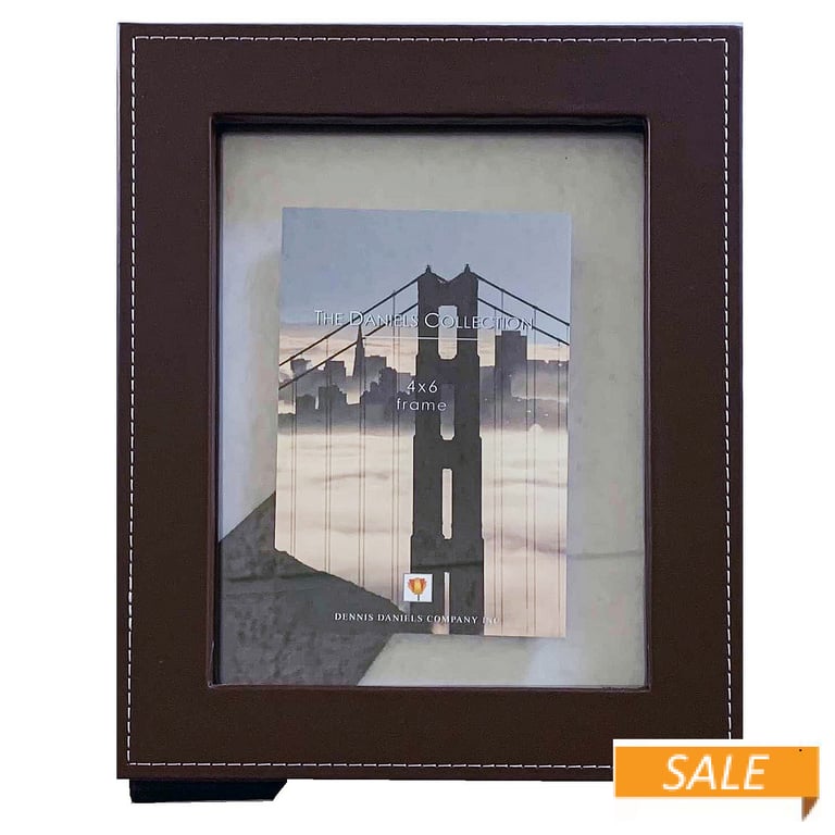 Main view Product Details Dennis Daniels® Chocolate-Brown COSMOPOLITAN FLOAT Leather 4x6/5x7 frame by Dennis Daniels® — Beautiful crafting in chocolate-brown luggage grade leather makes this classic hand-stitched look a winner. Displays up to a 4"x6" print floating between its 2 clear glass lenses. Stitching is a complimentary clean white. Easel back for tabletop display. Wall mounts included for easy hanging.Crafted by Dennis Daniels®, the beautiful frame people of California. Chocolate-Brown COSMOPOLITAN FLOAT Leather 4x6/5x7 frame by Dennis Daniels® Dennis Daniels® HOLIDAY CELEBRATION Savings - ends Sunday: Buy More / Save More * Add this item to your cart for the full details of this promotion. Conditions may apply. Model #782680017263 List $19.50 You pay $10.90 In stock Ships next business day [?] Your Price Match is Active Your request for a price of $0.00 for a minimum quantity of has been accepted. You have [time] left to purchase this item for $0.00 instead of $10.90 each. Find a Lower Price? We BEAT All Authorized Retailers [?] FEATURESDisplays:4"x6"Material:Leather (fine)Finish:BrownOccasion:Bar & Bat Mitzvah, Birthday, Bon voyage, Business & office, Congratulations, Corporate gifts, Good luck, Grandparent`s Day, Home decorating, Housewarming, Teacher gifts, Team & coach gifts, Thank-Motivate-Reward, Celebrating TravelsStyle:Classic, Contemporary, Rustic/Lodge, Traditional, Float FramesOrientation:BothBrand:Dennis Daniels®Display Type:Desktop or Wall This item ships in its own box SHARE THIS ITEM Share on Facebook
