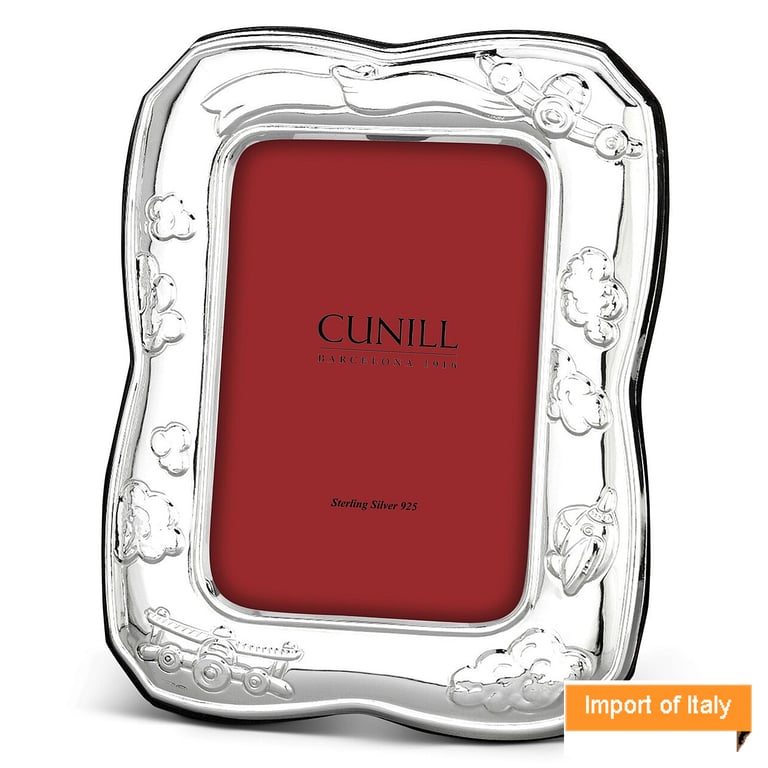 Main view Product Details Cunill® Silver AIRPLANE Fine Sterling 3x5 Frame by Cunill® Italy — Create an heirloom gift with this unique solid sterling silver AIRPLANE picture frame. Glare resistant glass lens. Finished mahogany wood easel back for tabletop display.Cunill sterling silver never needs polishing - it is finely lacquered to keep it tarnish free. Shipped in signature red 2 piece gift storage box.Crafted in - and imported from - Cunill Italy. SendAFrame carries the complete Cunill® frame collection for your shopping convenience. AIRPLANE Fine Sterling 3x5 Frame by Cunill® Italy Model #735816167837 List $195.00 You pay $164.95 This item can be expected to ship by 01/14/2026. Order now by clicking ADD TO CART (below); you are only charged when we actually ship. Or, Click here to be automatically notified when it comes back in stock. Your Price Match is Active Your request for a price of $0.00 for a minimum quantity of has been accepted. You have [time] left to purchase this item for $0.00 instead of $164.95 each. Find a Lower Price? We BEAT All Authorized Retailers [?] FEATURESDisplays:3.50"x5"Material:Sterling Silver (fine)Finish:SilverOccasion:Baby shower, Birthday (child), Baptism + Christening, New babyStyle:Child`s play, Contemporary, Traditional, Words & whimsyOrientation:Vertical OnlyBrand:Cunill® SilverDisplay Type:Desktop Only This item ships in its own box SHARE THIS ITEM Share on Facebook