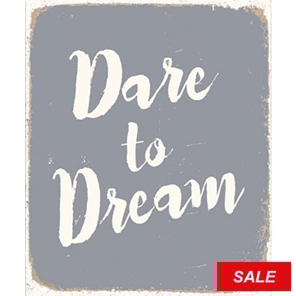 Product Details SIXTREES® DARE TO DREAM 10x12 Distressed-Wood Box Sign by Sixtrees® — Designed and produced by Sixtrees®, this inspirational box sign will certainly be a conversation starter in a casual room setting. DARE TO DREAM is painted in distressed grey on select grained hardwoods. Overall size is 10" x 12" x 1". Wall mounts included for easy hanging. Sixtrees® is a leader in unique décor for every home and work environment. SendAFrame stocks the entire Sixtrees® photo frame line, as well as related home accessories like this. To view the entire collection Sixtrees Collection at SendAFrame. DARE TO DREAM 10x12 Distressed-Wood Box Sign by Sixtrees® Model #783729248228 List $20.00 You pay $9.90 In stock Can be shipped today [?] Your Price Match is Active Your request for a price of $0.00 for a minimum quantity of has been accepted. You have [time] left to purchase this item for $0.00 instead of $9.90 each. Find a Lower Price? We BEAT All Authorized Retailers [?] FEATURESMaterial:Wood (full grain)Finish:Gray/Charcoal, WhiteOccasion:Friendship, Good luck, Housewarming, Inspirational, Public Area DisplayStyle:Architectural, College Dorm, Contemporary, Pop Culture, Rustic/Lodge, Sports & leisure, Words & whimsy, Sentiments | ready madeBrand:SIXTREES®Display Type:Wall Only Approx. Overall Dimensions:10"x12"x1" This item ships in its own box SHARE THIS ITEM Share on Facebook