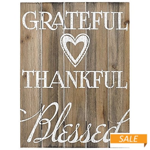 Product Details Malden Designs® GRATEFUL - THANKFUL - BLESSED Box Sign by Malden® — This inspirational box sign will certainly become a conversation starter in any casual room setting. GRATEFUL THANKFUL BLESSED Natural, wood plank construction. Wall mounts included for easy hanging. Malden® is a leader in unique frames and home décor for every home and work environment. GRATEFUL - THANKFUL - BLESSED Box Sign by Malden® Model #096287144834 List $20.00 You pay $9.90 In stock Can be shipped today [?] Your Price Match is Active Your request for a price of $0.00 for a minimum quantity of has been accepted. You have [time] left to purchase this item for $0.00 instead of $9.90 each. Find a Lower Price? We BEAT All Authorized Retailers [?] FEATURESMaterial:Wood (mdf/engineered)Finish:Brown, Ivory/Cream, Natural, WhiteOccasion:Housewarming, InspirationalStyle:Contemporary, Distressed - Weathered, Rustic/Lodge, Shabby Chic, Sports & leisure, Words & whimsy, Sentiments | ready madeBrand:Malden Designs®Display Type:Wall Only This item ships in its own box SHARE THIS ITEM Share on Facebook