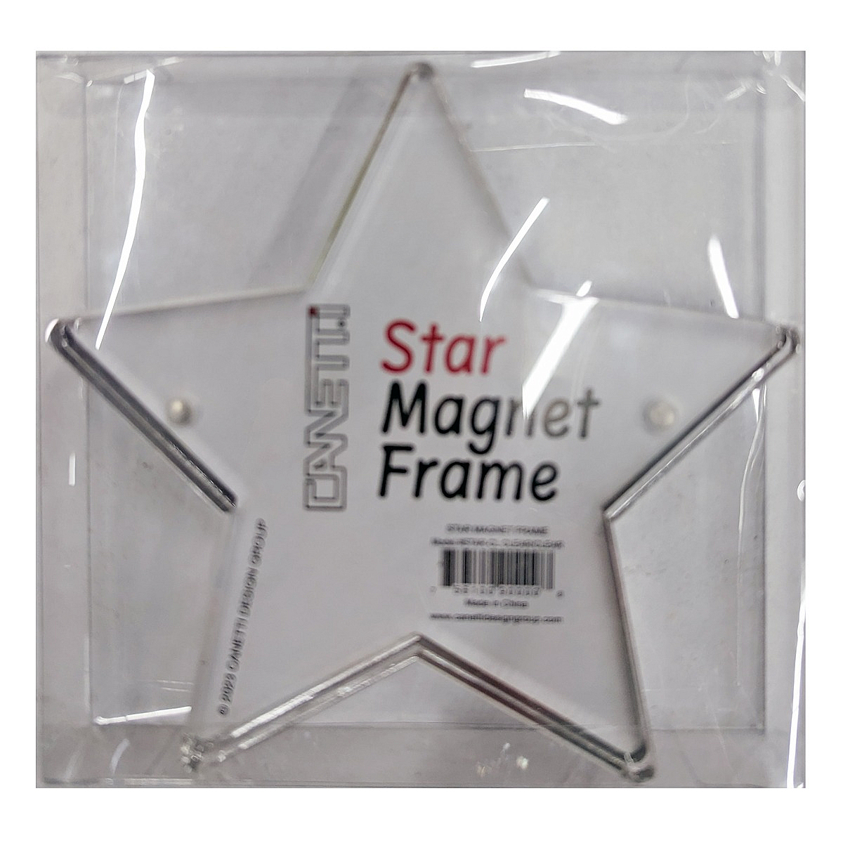 Main view Product Details Canetti Design® The STAR Magnet Frame 5x5 CLEAR/FROST by Canetti® — The new Magnet Frame - in the shape of a star ! Like all genuine Canetti® frames, it is made of two acrylic panels held together with small, super strong magnets. Double sided, show 2 photos back-to-back. Clear virgin acrylic Size: 5”x 5” x 1” Weight: 0.5 lb Holds 2 photos back-to-back Hint: Use display paper as a template for your photo Each frame is packed in a clear gift box Wipe clean with a soft, dry cloth By Canetti®, To shop the entire line, click Canetti Museum Frames. The STAR Magnet Frame 5x5 CLEAR/FROST by Canetti® Model #756100900053 List $16.00 You pay $14.95 In stock Can be shipped today [?] Your Price Match is Active Your request for a price of $0.00 for a minimum quantity of has been accepted. You have [time] left to purchase this item for $0.00 instead of $14.95 each. Find a Lower Price? We BEAT All Authorized Retailers [?] FEATURESDisplays:5"x5"Material:Acrylic | ResinOccasion:Birthday, Bon voyage, Celebrating Travels, Congratulations, Engagement, Group Events + Parties, Get well, Grandparent`s Day, Inspirational, Mother`s Day, Public Area Display, Romantic, Teacher gifts, Thank-Motivate-Reward, Valentine`s DayStyle:Architectural, Contemporary, Double-sided, Hi-tech, Float Frames, Minimal, Easy-er to use, Unique | Limited, Modern (mid-century) wipBrand:Canetti Design®Display Type:Desktop Only Approx. Overall Dimensions:5"x5"x1" This item ships in its own box SHARE THIS ITEM Share on Facebook